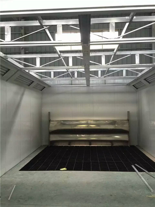 全正压(底、面漆)标准喷漆房,房体采用夹芯保温板,此夹芯保温板由三层组成,内外两层是优 质钢板,中间是高密度隔热材料。这样就有效的隔绝了喷房内热量的传递,减少了热量的浪费,节约 了能源。同时,又兼顾美观大方、经济耐用的优点。