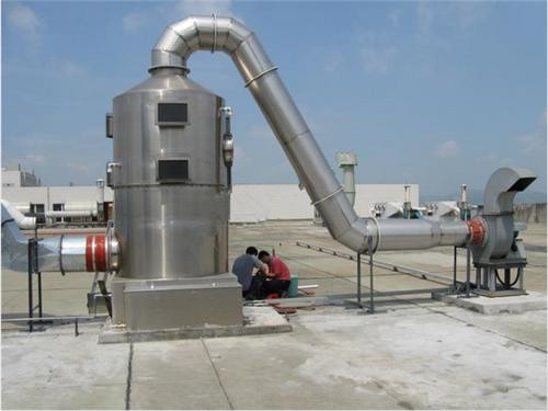 采用液体吸收法治理该废气,关键在于净化设备的选择。目前,我公司自主开发了净化效率高、操作管理 简单、使用寿命长的酸、碱性废气净化工艺与设备。该工艺与产品综合国内外同类净化塔的优点,多级旋 转式喷淋、吸收,同时对填料层及塔体进行了技术参数上的优化,结构简单、能耗低、净化效率高和适用 范围广的特点,能有效去除氯化氢气体(HCI)、氟化氢气体(HF)、氨气(明3)、硫酸雾(H2S04)、 络酸雾(CRO3)、氢氤酸气体(HCN)、碱蒸气(NAOH)、氯化氢气体(H2S)、福尔马林(HCHO) 等水溶性气体